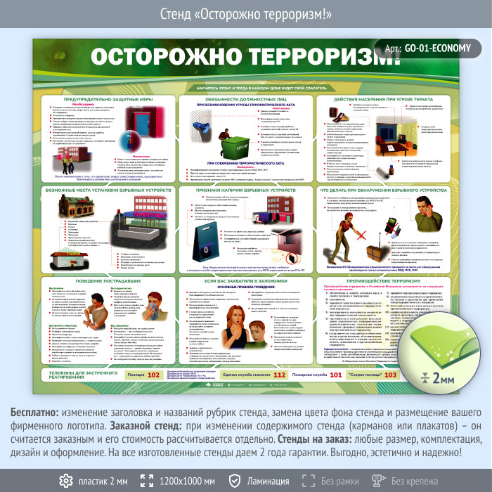 Стенд «Осторожно терроризм!» (GO-01-ECONOMY) в Кашире купить