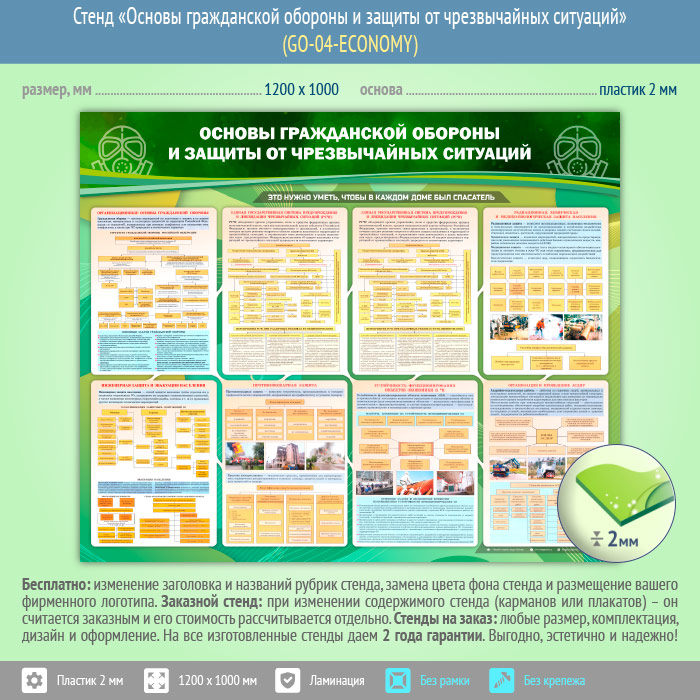 Стенд «Основы гражданской обороны и защиты от чрезвычайных ситуаций» (GO-04-ECONOMY) в Кашире купить