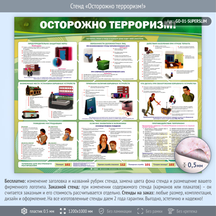 Стенд «Осторожно терроризм!» (GO-01-SUPERSLIM) в Кашире купить