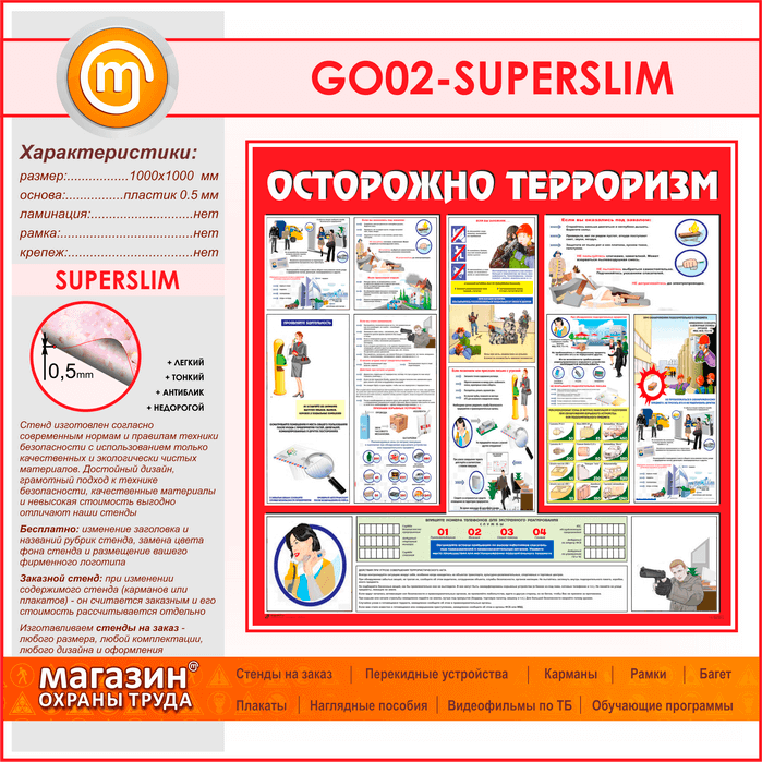 Стенд «Осторожно терроризм!» (GO-02-SUPERSLIM) в Кашире купить