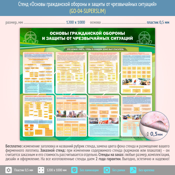 Стенд «Основы гражданской обороны и защиты от чрезвычайных ситуаций» (GO-04-SUPERSLIM) в Кашире купить