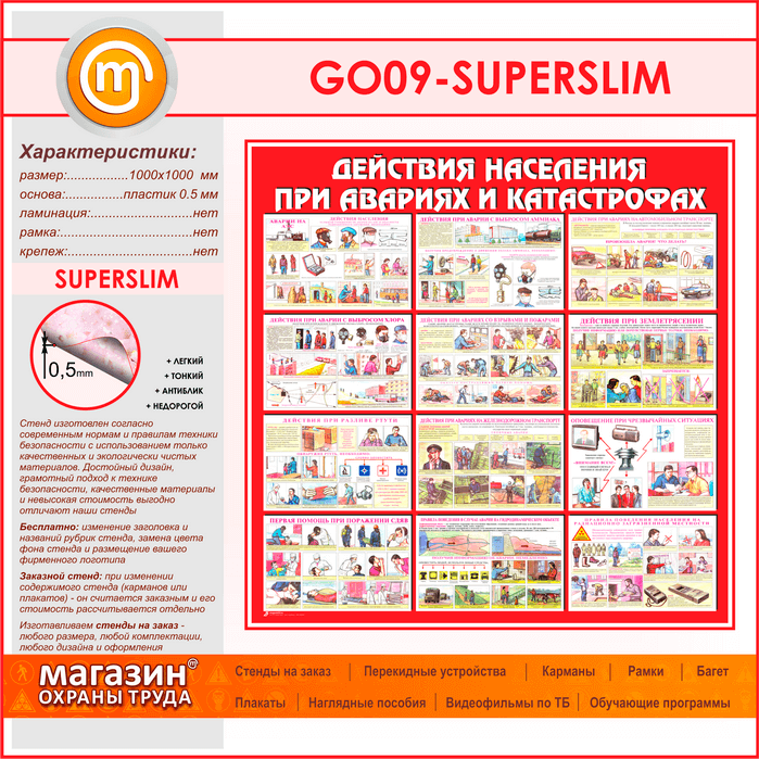 Стенд «Действия населения при авариях и катастрофах» (GO-09-SUPERSLIM) в Кашире купить