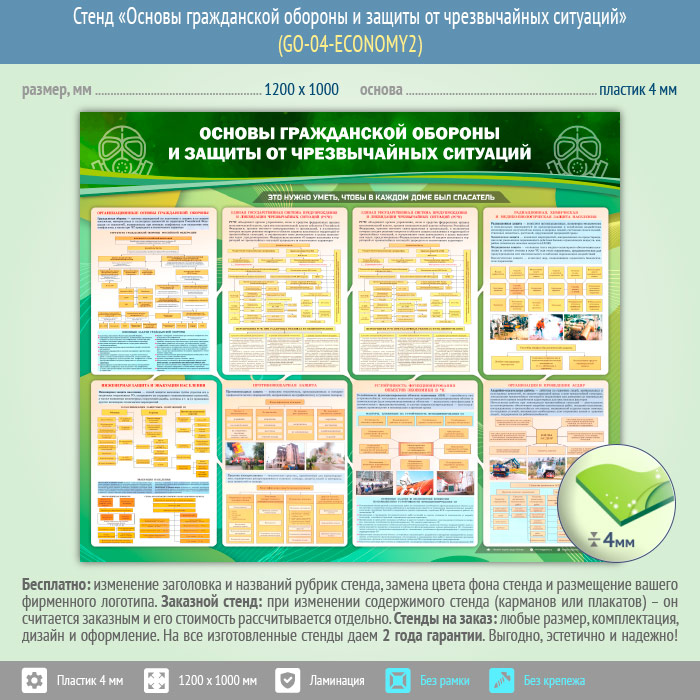Стенд «Основы гражданской обороны и защиты от чрезвычайных ситуаций» (GO-04-ECONOMY2) в Кашире купить