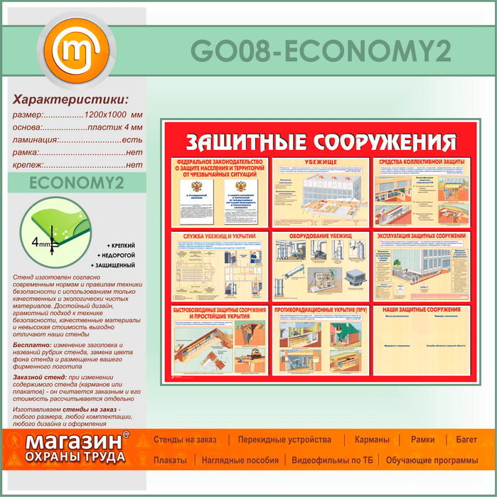 Стенд «Защитные сооружения» (GO-08-ECONOMY2) в Кашире купить