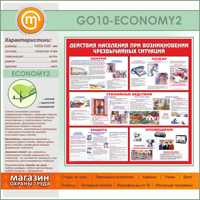 Стенд «Действия населения при возникновении чрезвычайных ситуаций» (GO-10-ECONOMY2) в Кашире купить