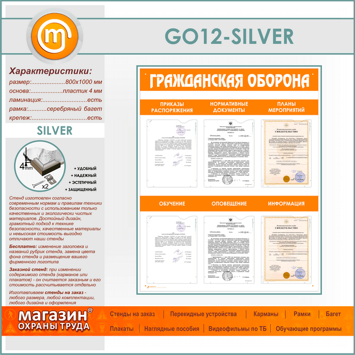 Стенд «Гражданская оборона» с 6 плоскими карманами (GO-12-SILVER) в Кашире купить