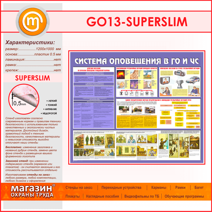 Стенд «Система оповещения в ГО и ЧС» (GO-13-SUPERSLIM) в Кашире купить