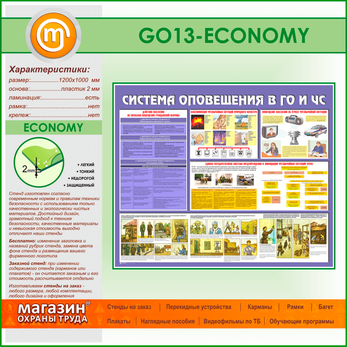 Стенд «Система оповещения в ГО и ЧС» (GO-13-ECONOMY) в Кашире купить
