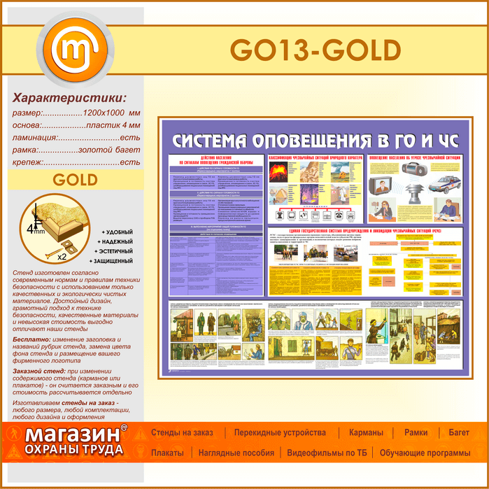 Стенд «Система оповещения в ГО и ЧС» (GO-13-GOLD) в Кашире купить
