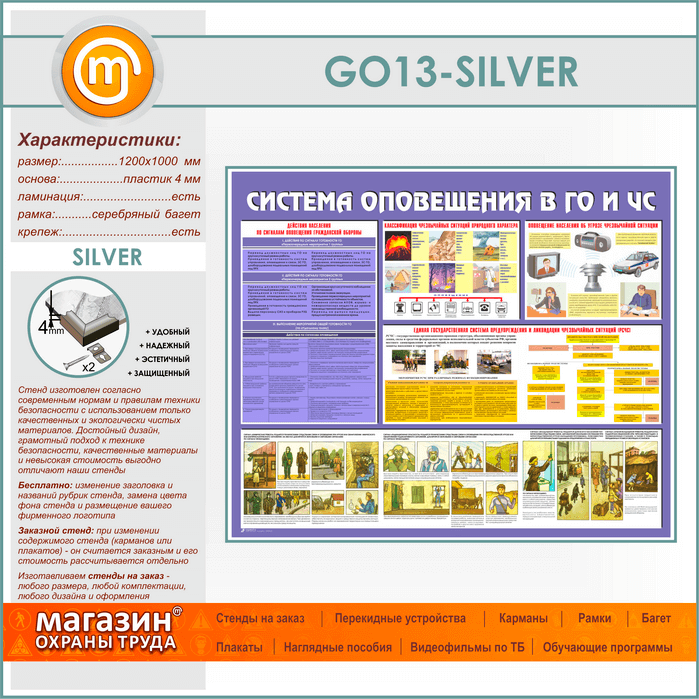 Стенд «Система оповещения в ГО и ЧС» (GO-13-SILVER) в Кашире купить