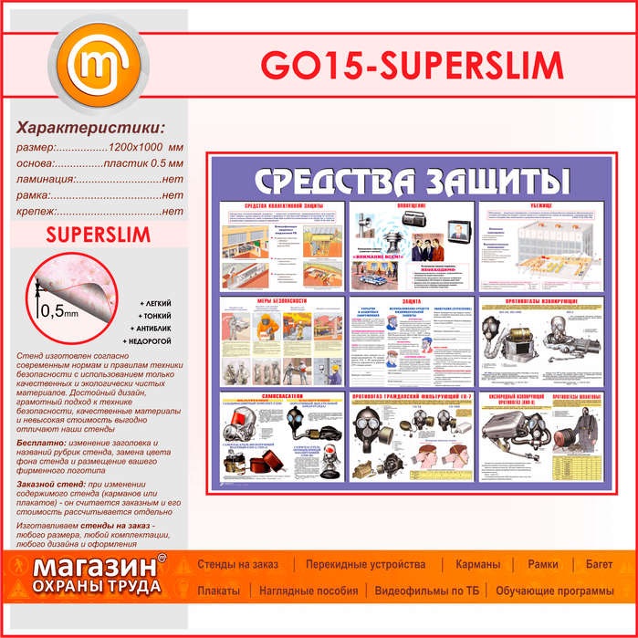 Стенд «Средства защиты» (GO-15-SUPERSLIM) в Кашире купить