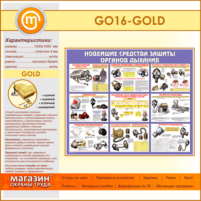Стенд «Новейшие средства защиты органов дыхания» (GO-16-GOLD) в Кашире купить