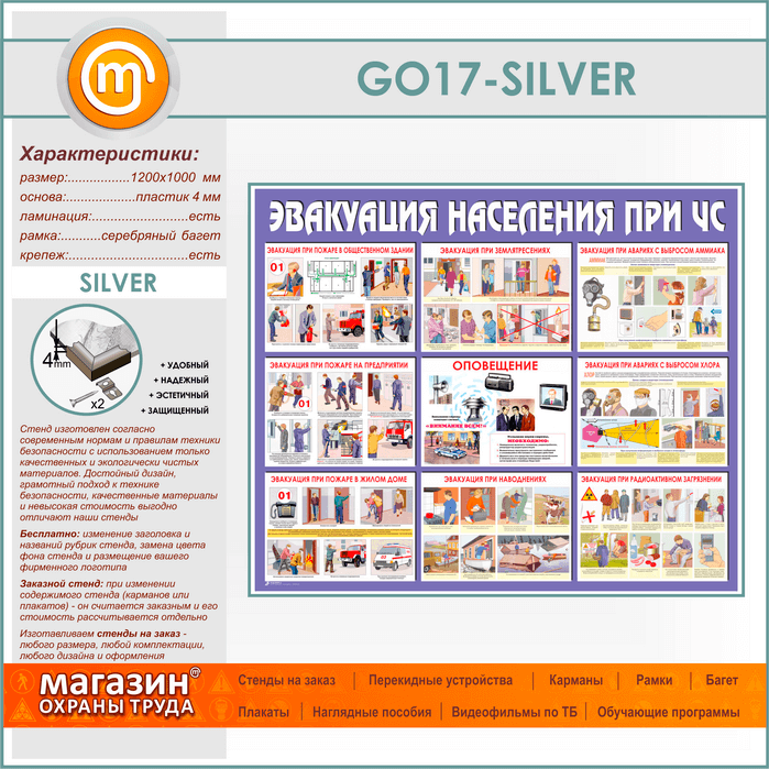 Стенд «Эвакуация населения при ЧС» (GO-17-SILVER) в Кашире купить