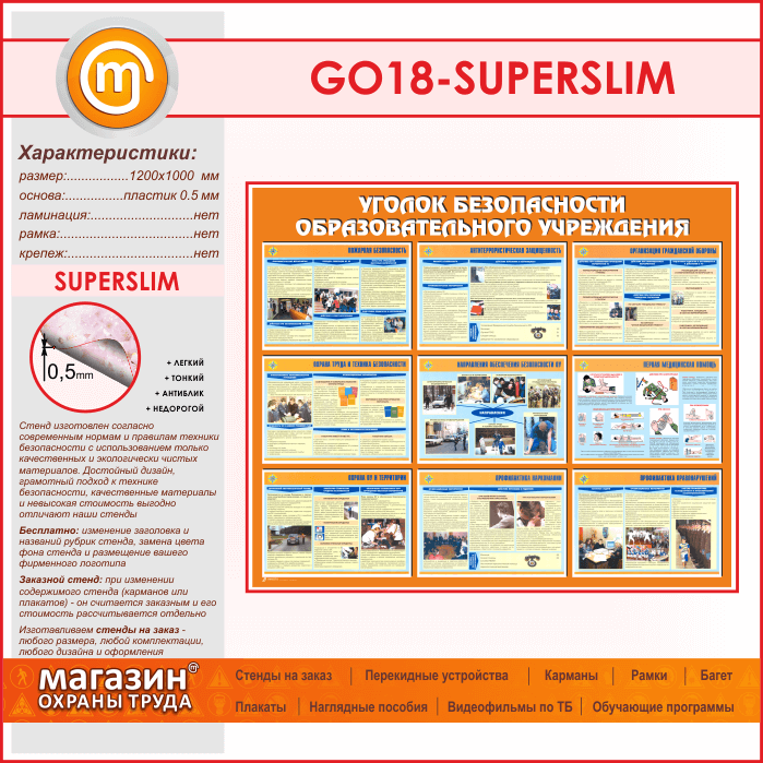 Стенд «Уголок безопасности образовательного учреждения» (GO-18-SUPERSLIM) в Кашире купить