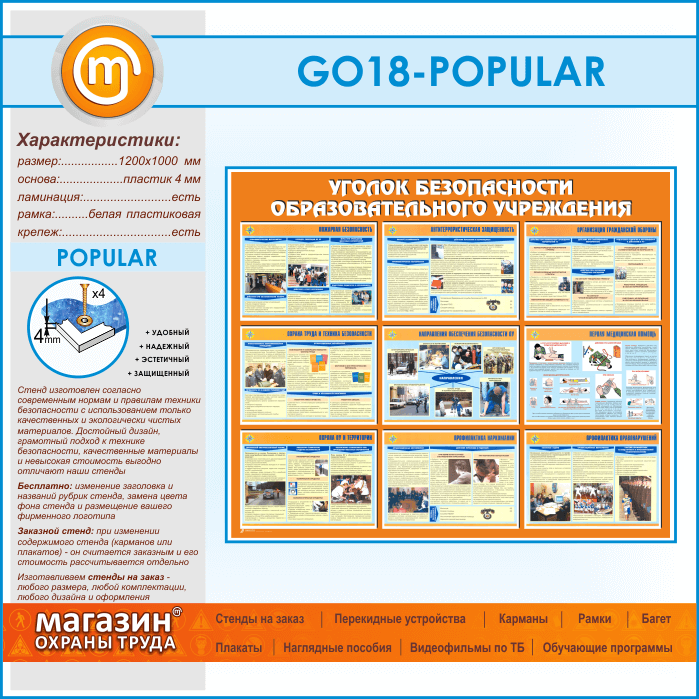 Стенд «Уголок безопасности образовательного учреждения» (GO-18-POPULAR) в Кашире купить