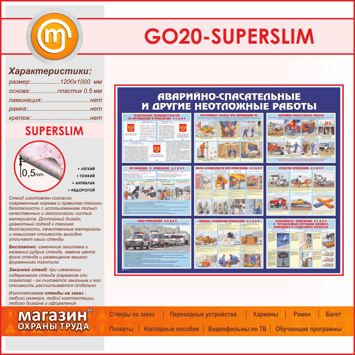Стенд «Аварийно-спасательные и другие неотложные работы» (GO-20-SUPERSLIM) в Кашире купить