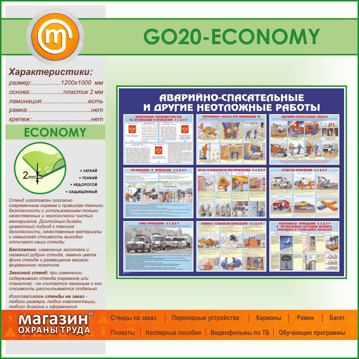 Стенд «Аварийно-спасательные и другие неотложные работы» (GO-20-ECONOMY) в Кашире купить