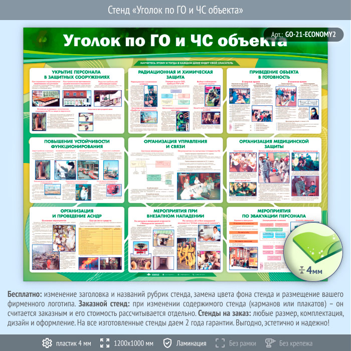 Стенд «Уголок по ГО и ЧС объекта» (GO-21-ECONOMY2) в Кашире купить