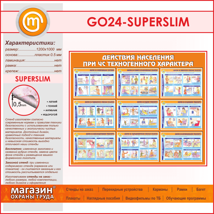 Стенд «Действия населения при ЧС техногенного характера» (GO-24-SUPERSLIM) в Кашире купить