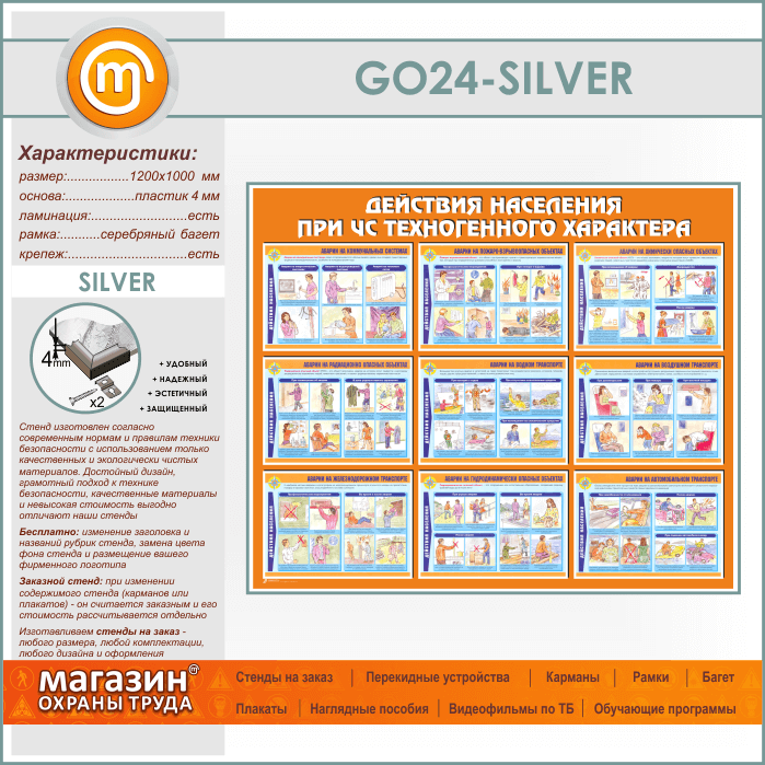 Стенд «Действия населения при ЧС техногенного характера» (GO-24-SILVER) в Кашире купить