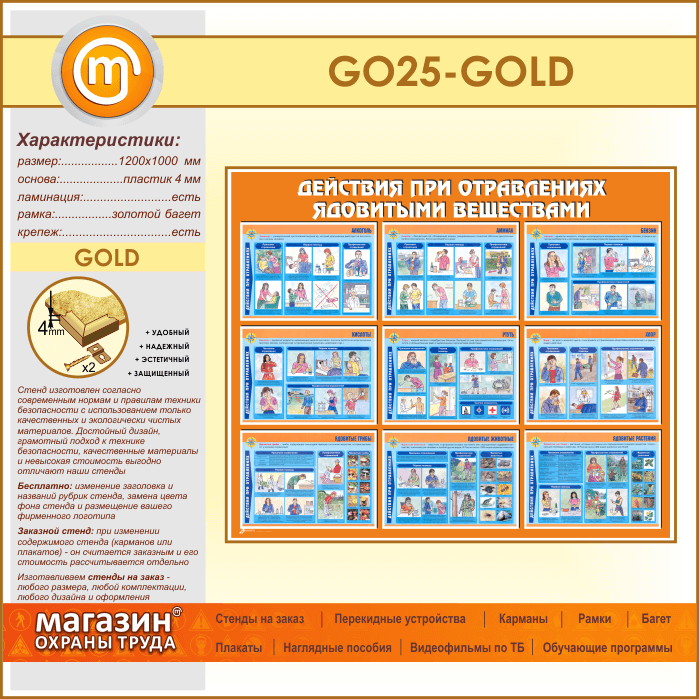 Стенд «Действия при отравлении ядовитыми веществами» (GO-25-GOLD) в Кашире купить