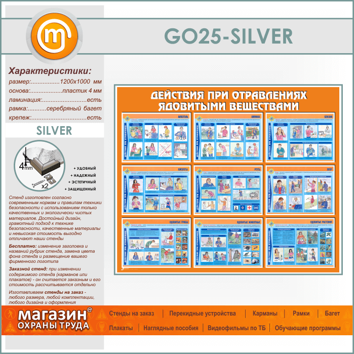 Стенд «Действия при отравлении ядовитыми веществами» (GO-25-SILVER) в Кашире купить