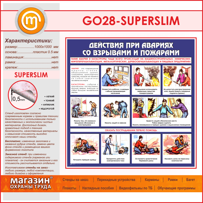 Стенд «Действия при авариях со взрывами и пожарами» (GO-28-SUPERSLIM) в Кашире купить