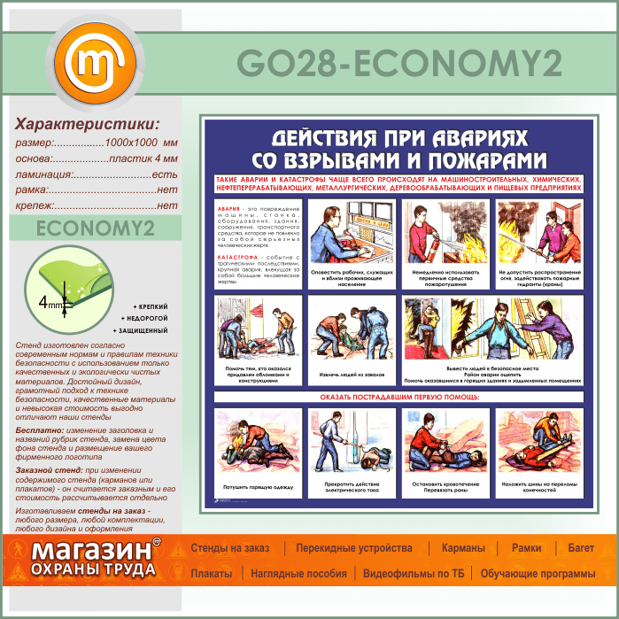 Стенд «Действия при авариях со взрывами и пожарами» (GO-28-ECONOMY2) в Кашире купить