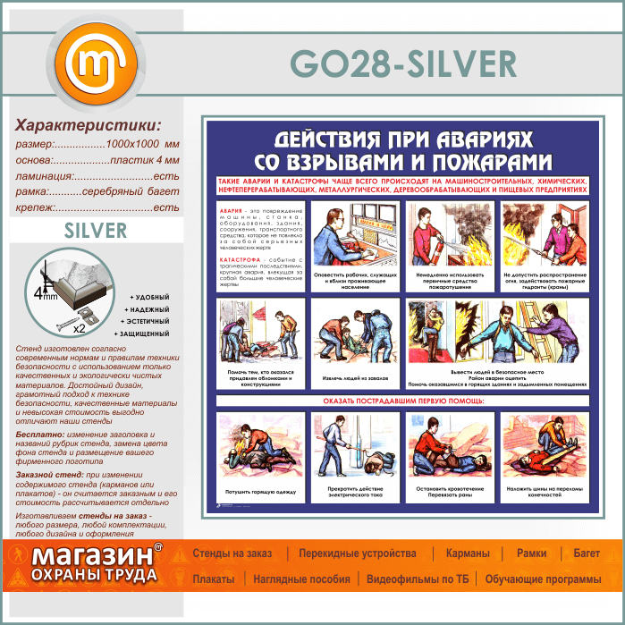 Стенд «Действия при авариях со взрывами и пожарами» (GO-28-SILVER) в Кашире купить