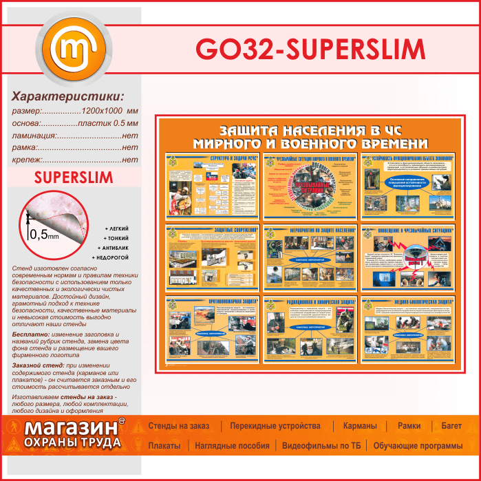 Стенд «Защита населения в ЧС мирного и военного времени» (GO-32-SUPERSLIM) в Кашире купить