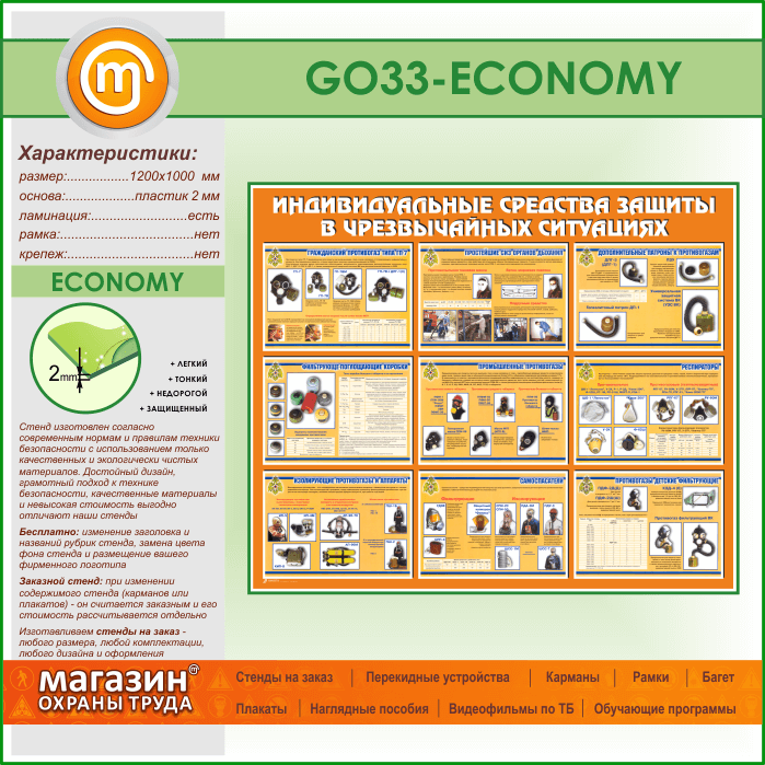 Стенд «Индивидуальные средства защиты в чрезвычайных ситуациях» (GO-33-ECONOMY) в Кашире купить