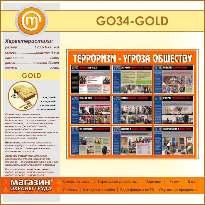 Стенд «Терроризм - угроза обществу» (GO-34-GOLD) в Кашире купить