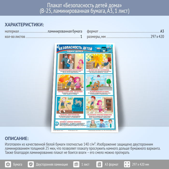 Плакат «Безопасность детей дома» (В-25, ламинированная бумага, А3, 1 лист) в Кашире купить