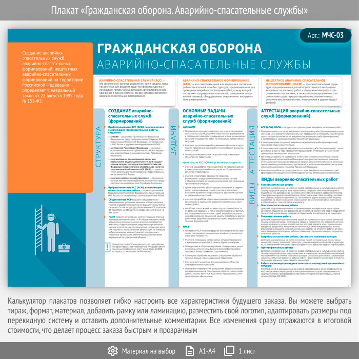 Плакат «Гражданская оборона. Аварийно-спасательные службы» (МЧС-03, 1 лист) в Кашире купить