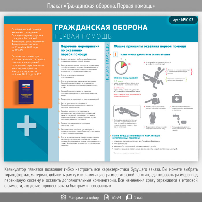 Плакат «Гражданская оборона. Первая помощь» (МЧС-07, 1 лист) в Кашире купить