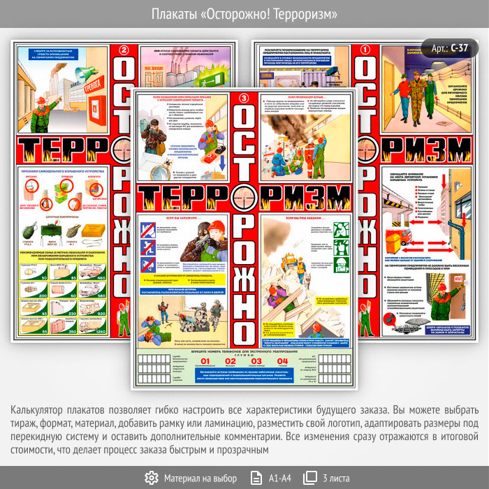 Плакаты «Осторожно! Терроризм» (С-37, 3 листа) в Кашире купить