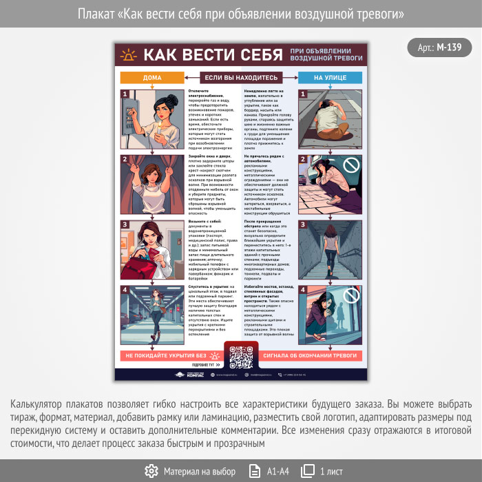 Плакат «Как вести себя при объявлении воздушной тревоги» с QR (М-139, 1 лист) в Кашире купить