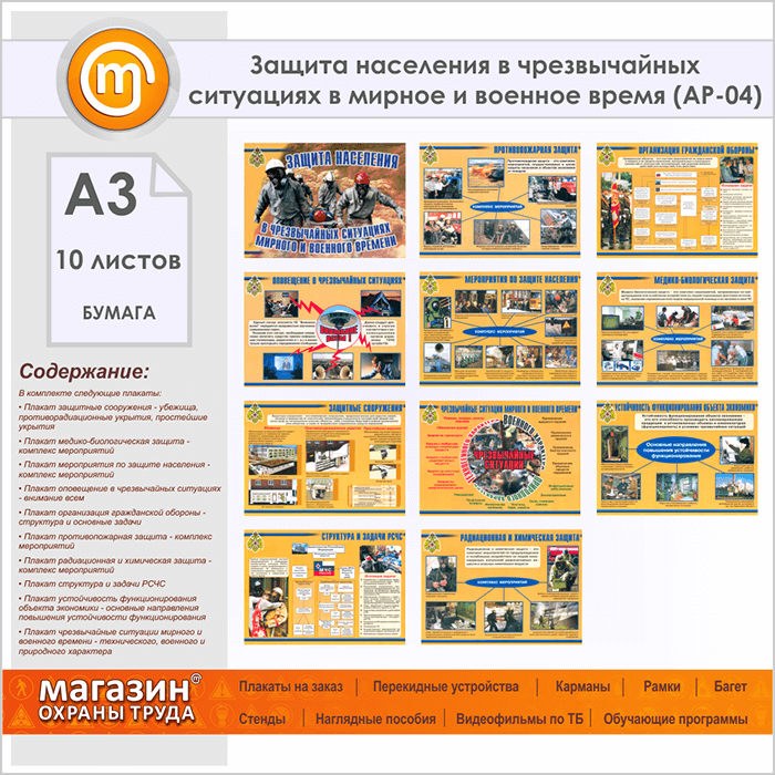 Плакаты «Защита населения в чрезвычайных ситуациях в мирное и военное время» (АР-04, бумага, А3, 10 листов) в Кашире купить