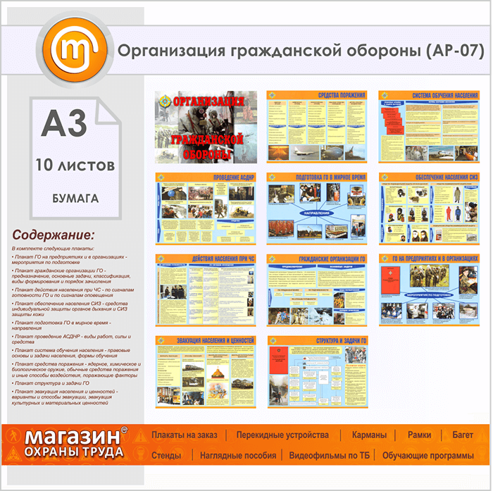 Плакаты «Организация гражданской обороны» (АР-07, бумага, А3, 10 листов) в Кашире купить