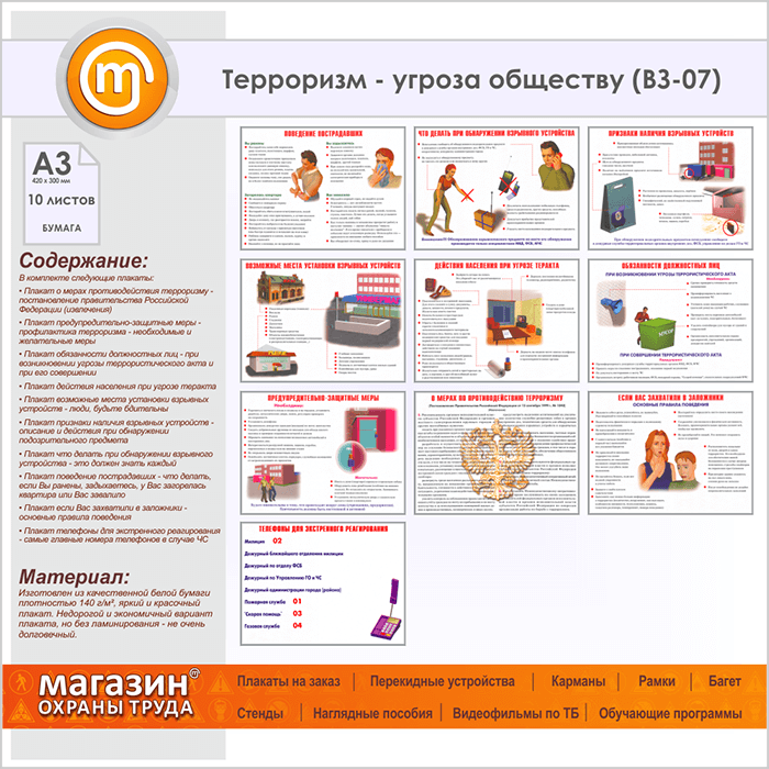 Плакаты «Терроризм - угроза обществу» (ВЗ-07, бумага, А3, 10 листов) в Кашире купить