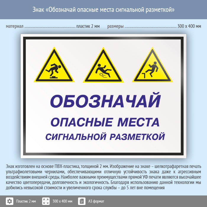 Знак «Обозначай опасные места сигнальной разметкой», КЗ-30 (пластик, 400х300 мм) в Кашире купить