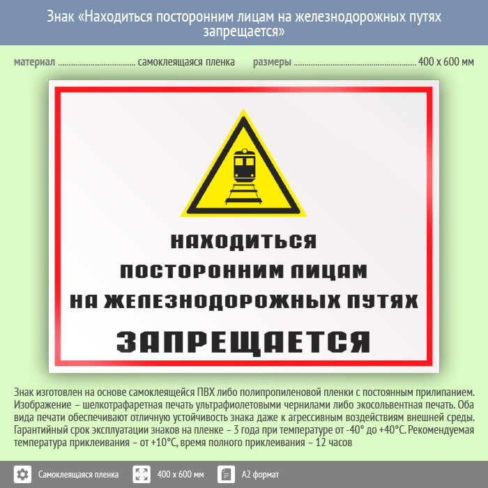 Знак «Находиться посторонним лицам на железнодорожных путях запрещается», КЗ-24 (пленка, 600х400 мм) в Кашире купить