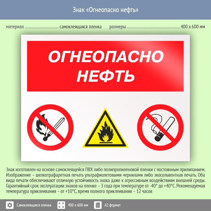 Знак «Огнеопасно нефть», КЗ-31 (пленка, 600х400 мм) в Кашире купить