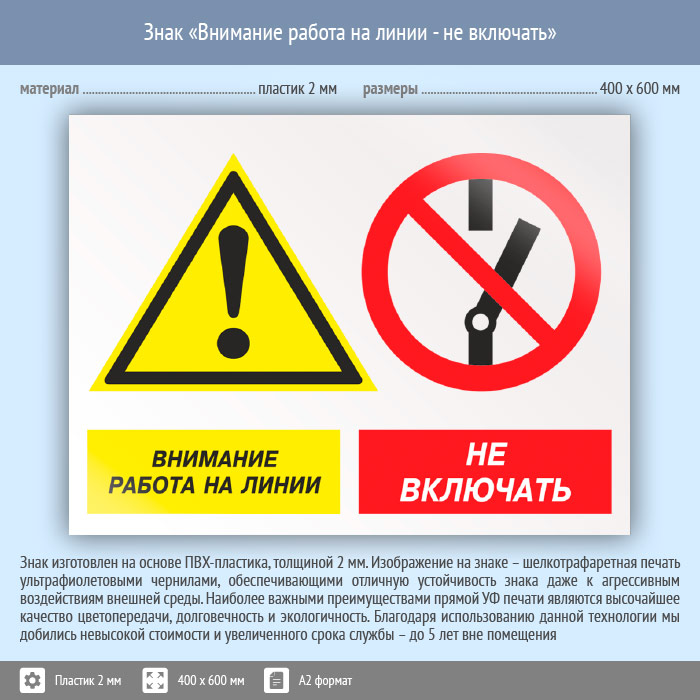 Знак «Внимание работа на линии - не включать», КЗ-16 (пластик, 600х400 мм) в Кашире купить