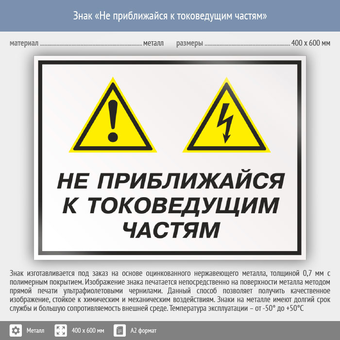 Знак «Не приближайся к токоведущим частям», КЗ-29 (металл, 600х400 мм) в Кашире купить