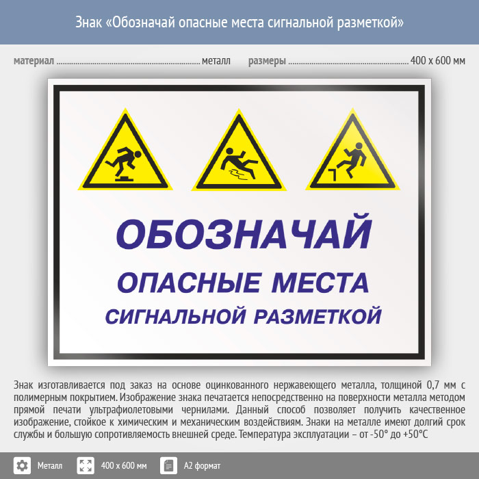 Знак «Обозначай опасные места сигнальной разметкой», КЗ-30 (металл, 600х400 мм) в Кашире купить