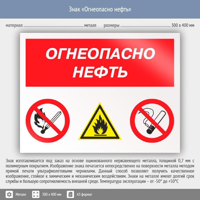 Знак «Огнеопасно нефть», КЗ-31 (металл, 400х300 мм) в Кашире купить