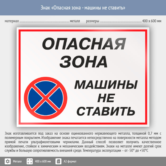 Знак «Опасная зона - машины не ставить», КЗ-32 (металл, 600х400 мм) в Кашире купить