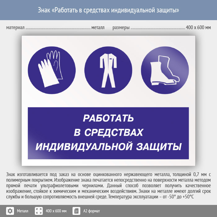 Знак «Работать в средствах индивидуальной защиты», КЗ-81 (металл, 600х400 мм) в Кашире купить