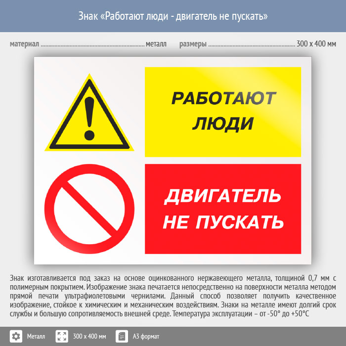 Знак «Работают люди - двигатель не пускать», КЗ-82 (металл, 400х300 мм) в Кашире купить